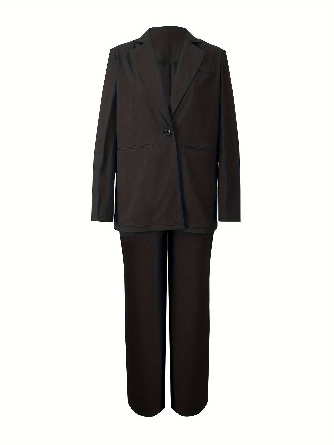 Elegant Office Solid Color Pants, Single Breasted Lapel Blazer & Straight Leg Loose Simple Pants, Women’s Clothing