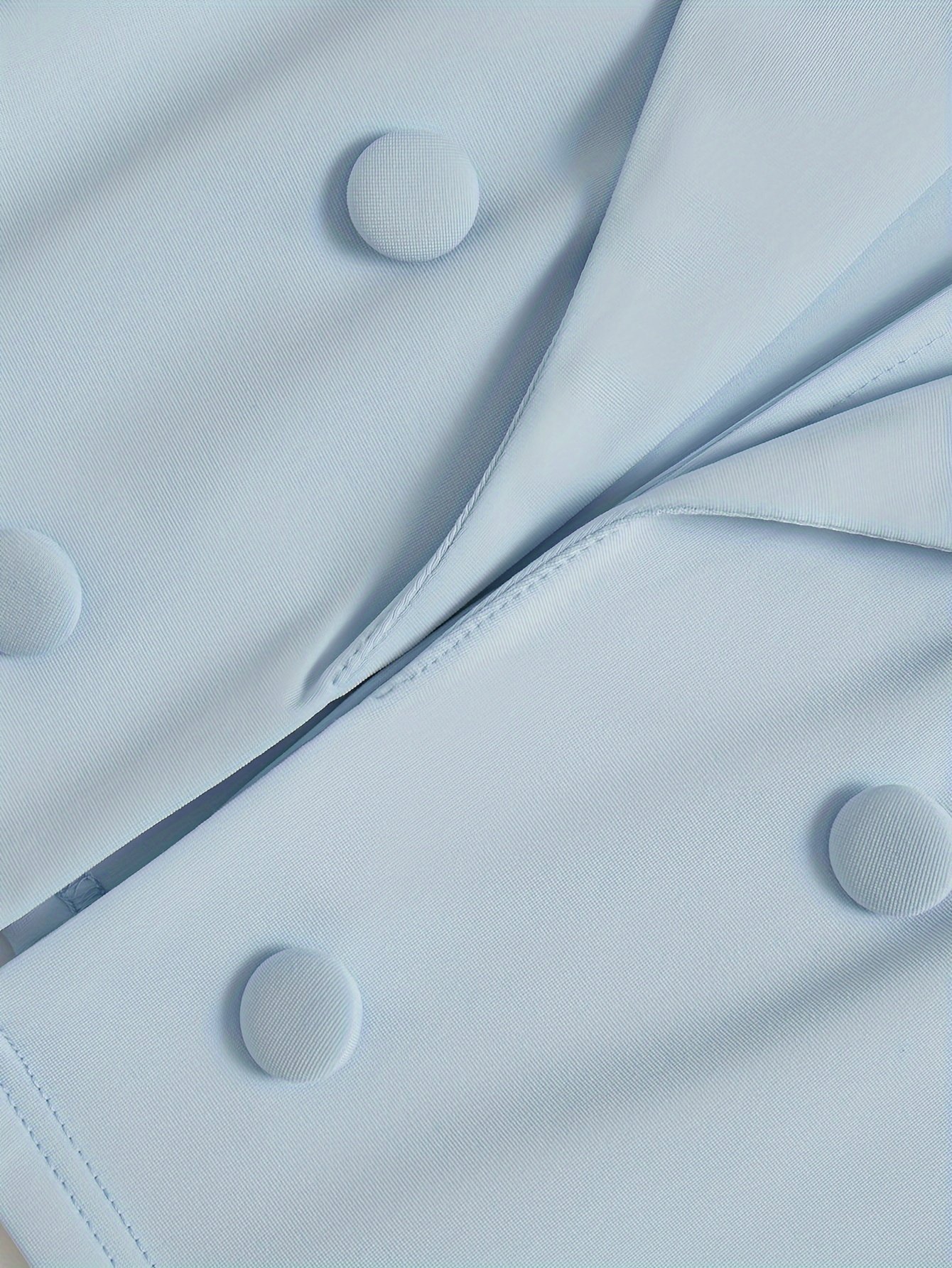 Be the first to review “Solid Work & Office Elegant Skirt Set, Long Sleeve Double Breasted Lapel Collar Crop Blazer & Split Hem Mini Skirt Outfits, Women’s Clothing”